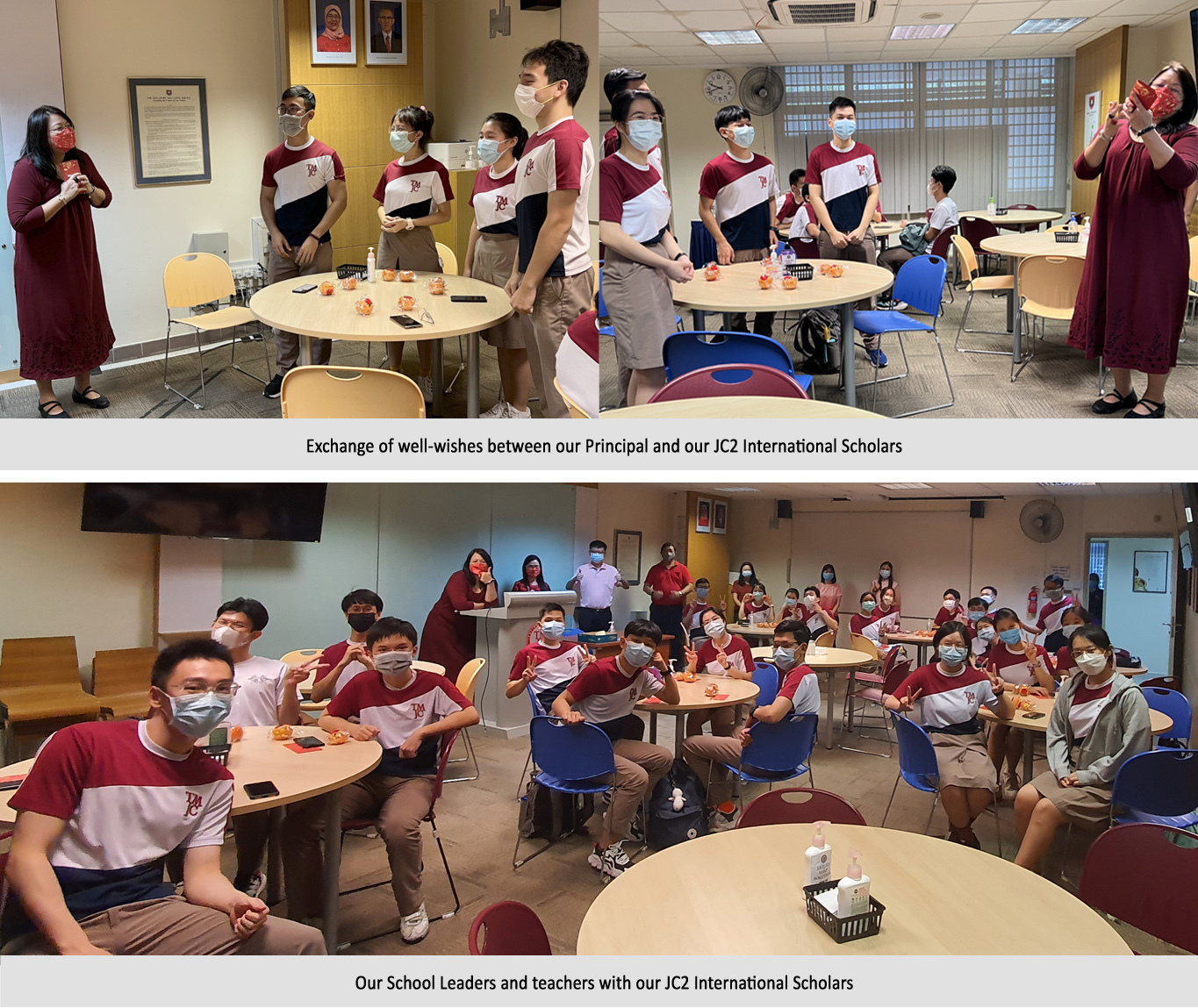 On 31 January 2022, as part of our TMJC CNY Celebrations, our 24 JC2 International Scholars met our Principal, Ms Pamela Yoong, to exchange well wishes for the Lunar New Year. During the session, Ms Yoong shared words of blessings with them on behalf of the College. In return, our scholars shared hopes for the College in line with the positive qualities of the Tiger.