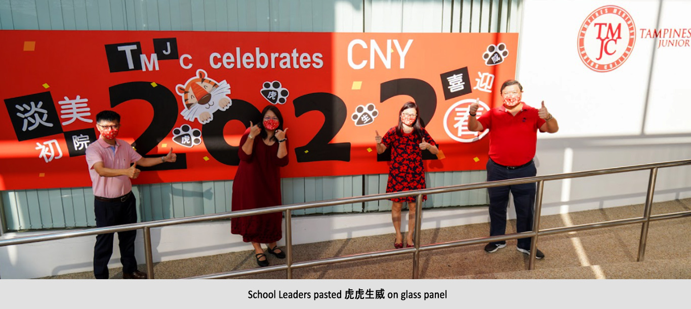 The celebration ended on a high note, with our School Leaders pasting 4 Chinese characters “虎虎生威” (Forging ahead with the vigour and vitality of the tiger) on the large colourful decal “TMJC celebrates CNY 2022”, motivating TMJCians to embody courage and strength as they journey forward in the year ahead.