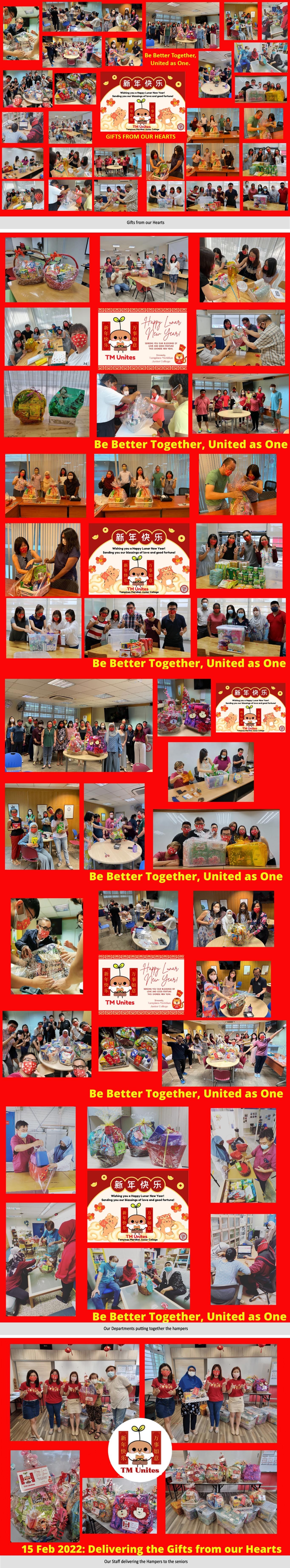 On 15 Feb 2022, 29 Festive Hampers were presented to the seniors at COMNET@476A Pasir Ris. These hampers were gifts from our TMJC Staff's heart where each department came together to put together hampers filled with necessities for our seniors.