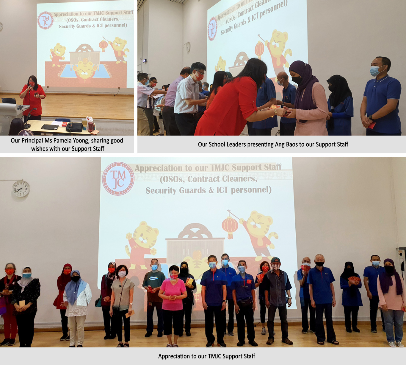 On 9 Feb 2022, together with our School leaders, the TMJC Staff Wellbeing Committee presented Ang Baos to our college Support Staff to thank them for supporting us in our college daily operations.