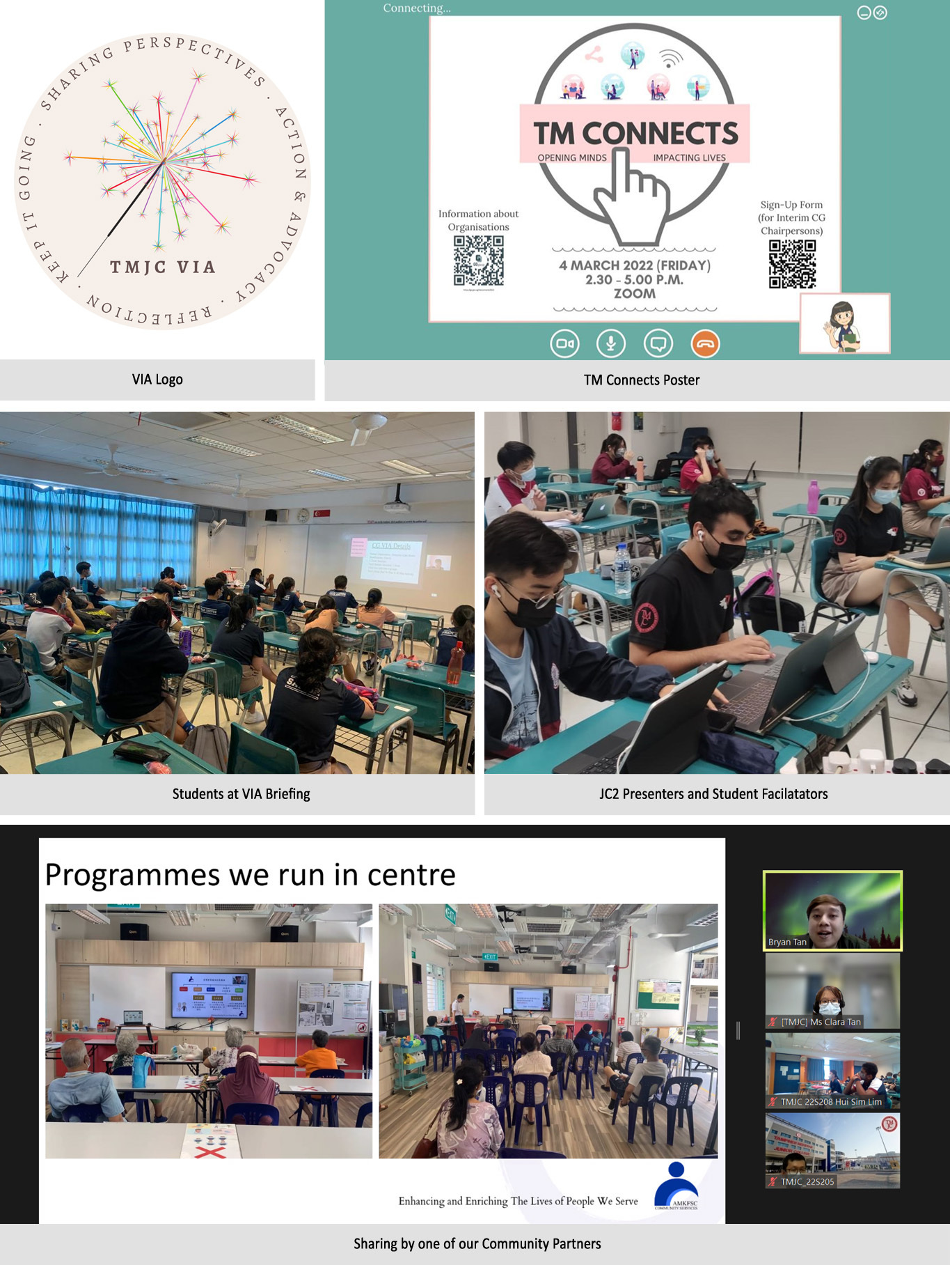 TM Connects, a community awareness event organised by the TMJC Values In Action Committee, was carried out virtually on 4 March 2022 from 2.30pm to 5pm through Zoom. The theme for TM Connects 2022 is “Opening Minds, Impacting Lives”.