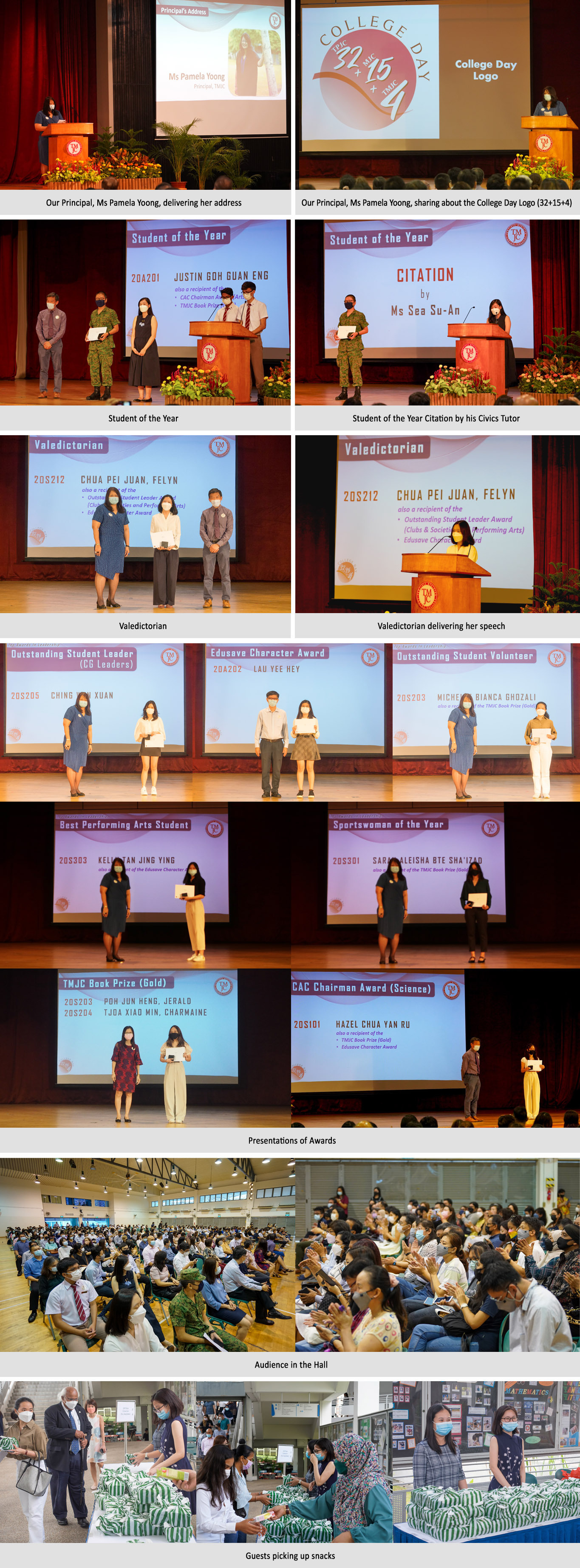 At the ceremony, our Principal, Ms Pamela Yoong recounted how the graduating cohort of 2021 braved their two years in JC with the full suite of safe management measures, and despite most College activities pivoting online, the cohort still grew together as a close-knit community and made lasting friendships and beautiful memories. Indeed, the Class of 2021 pulled in the most impressive A-Level achievements thus far, attesting to the proud fact that even the pandemic could not thwart their determination to reach for the stars.