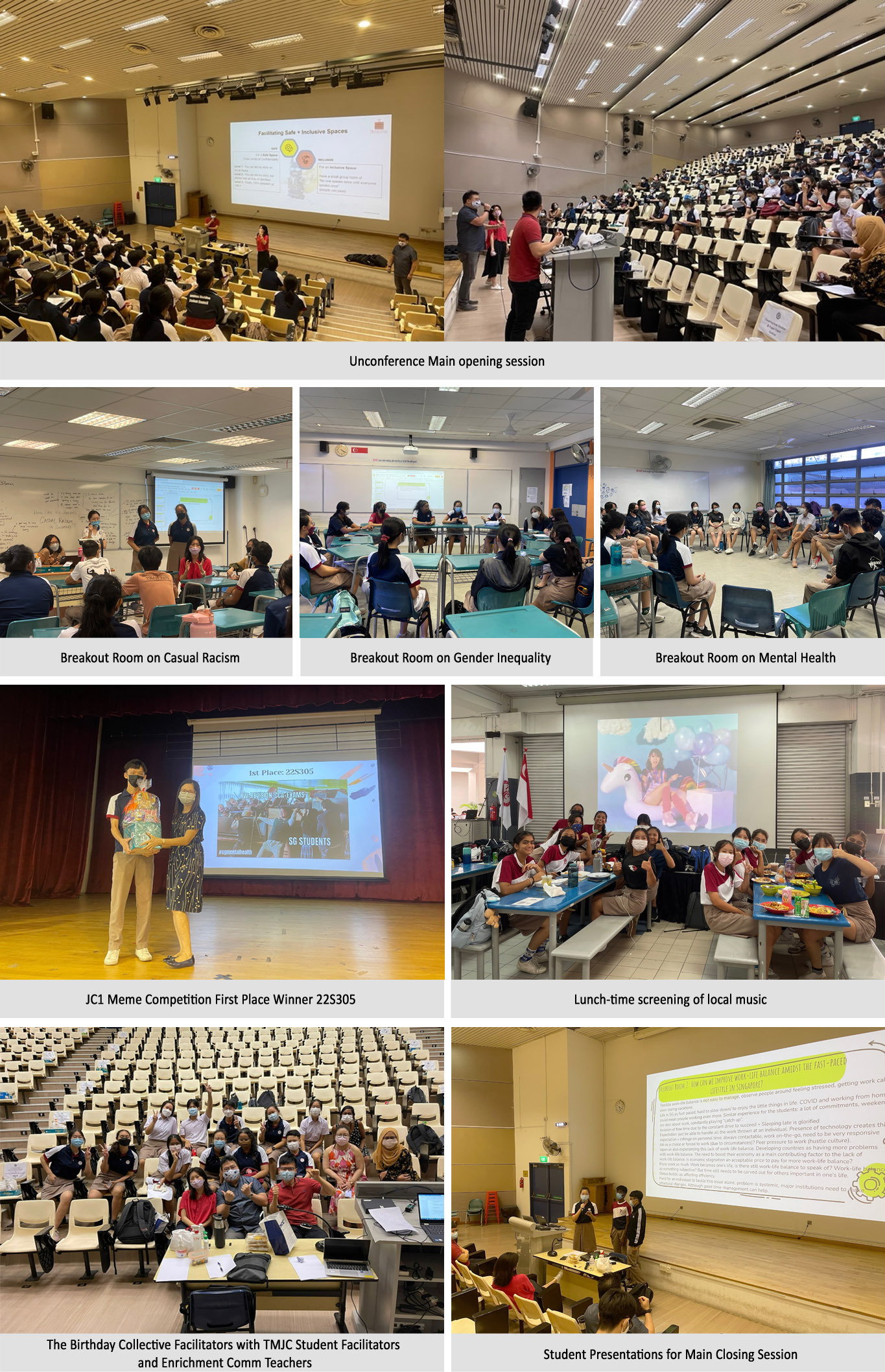 As Unconferences are participant-driven and less top-down than conventional conferences, our students were actively involved in the brainstorming and selection of topics for Breakout Rooms. The discussions in Breakout Rooms were also facilitated by a group of student facilitators who were trained by The Birthday Collective to adopt Open Space Technology, an innovative and emergent facilitation technique. Rich, authentic and meaningful dialogues took place in the Breakout Rooms as students shared their views on a range of local issues of significance such as gender inequality, mental health, work-life harmony, elitism and casual racism. Students were empowered to gain ownership of important local issues and come up with their own solutions which led to the development of active advocacy and empathy.