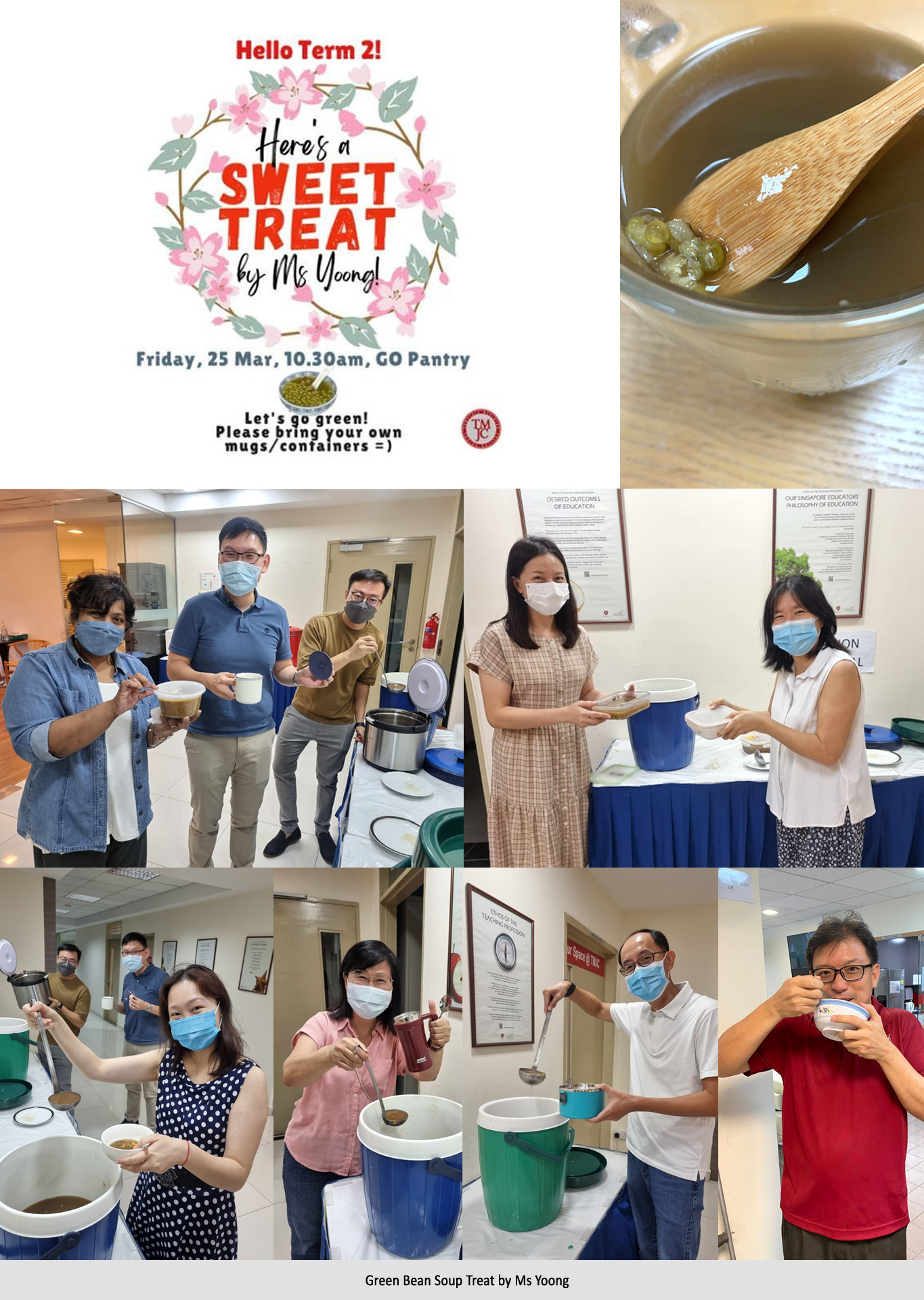 The March holidays came and went in a jiffy! Before we knew it, Term 2 was in full swing! To kick start this brand new term, Our Principal, Ms Yoong has kindly catered refreshing Green Bean Soup for all staff to enjoy on the 25th of March! The warm, yummilicious dessert was catered by our Muslim and Western canteen stalls.