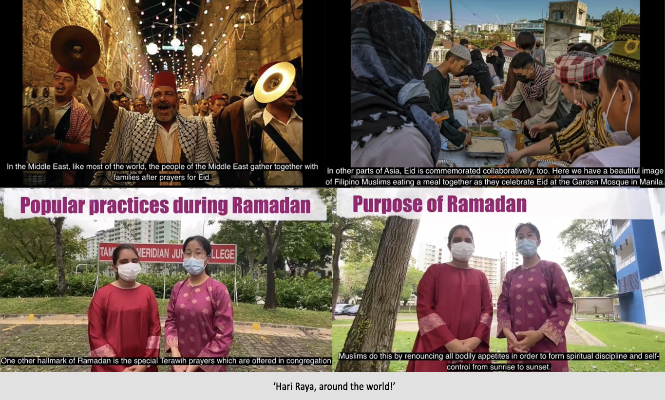 Following this was an educational video, ‘Hari Raya, around the world!’ by our Citizenship Education Student Ambassadors. This video showcased some popular practices by Muslims during Ramadan which include, eating of the dates and Terawih prayers. Hari Raya is also celebrated differently in Singapore, Philippines and the Middle East. The online programme ended with a video collage of meaningful Hari Raya greetings by our staff and students to all Muslims in TMJC!