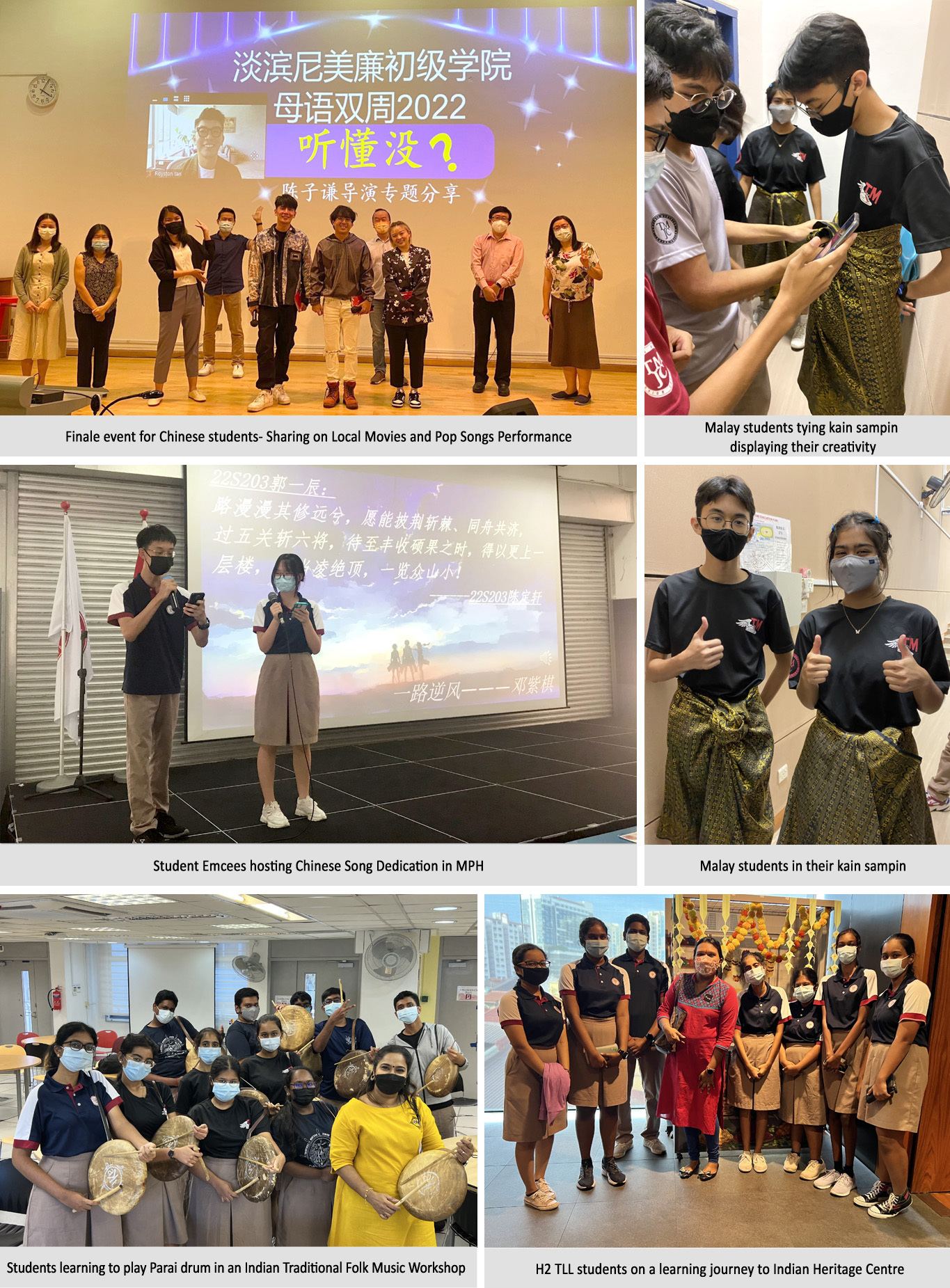 With the objective to create an immersive environment for learning and appreciating Mother Tongue Languages and Cultures, the MTL Department organized the Mother Tongue Fortnight 2022 for our students.Three student emcees kick-started our event on 18 April, presenting to the college the Fortnight’s programme highlights in 3 different Mother Tongue Languages. With “A Quote A Day”, our student presenters also shared a Chinese, Malay, or Tamil proverb with their insights during morning assembly, to motivate their peers in their learning.