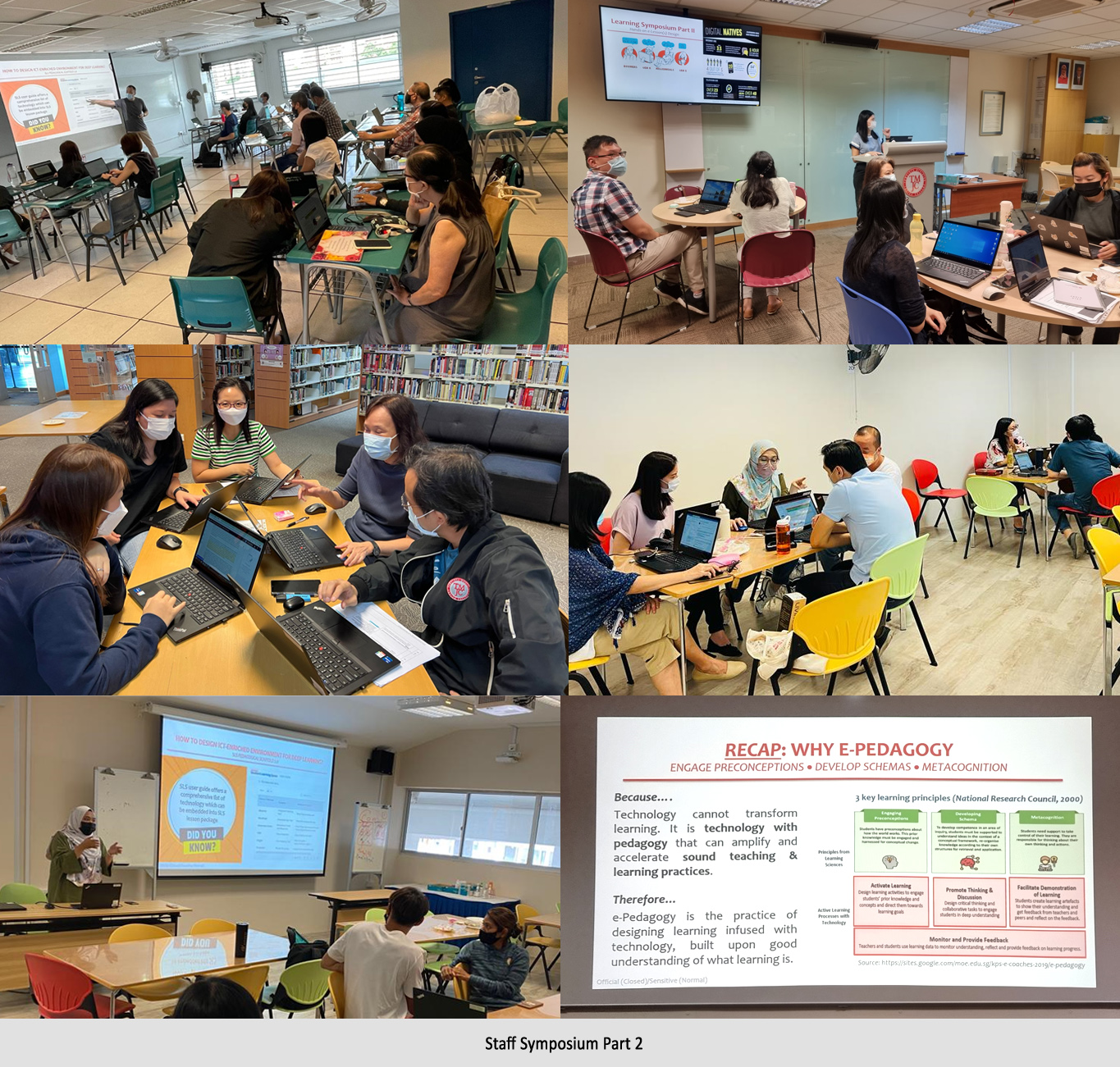 In the second half of the Learning Symposium, staff was given time to understand and apply the principles of e-pedagogy through group discussions and hands-on e-lessons design. Our ICT Committee teachers facilitated the sessions, highlighting the different stages of e-lesson design. There were a lot of buzz and excitement exploring the possibilities of how technology can be harnessed in activating our student’s learning!