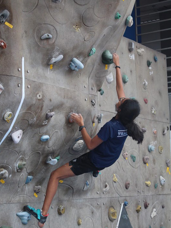 The TMJC Rockwall Climbing CCA aims to impart to its members relevant knowledge, skills, and concepts pertaining to Sport Climbing and Bouldering. Through activities that focus on movement training, safe belaying techniques, and problem-solving, members of the TMJC Rockwall Climbing CCA learn and apply these knowledge, skills, and concepts through safe, fun, and meaningful ways. Members of the TMJC Rockwall Climbing CCA will have opportunities to participate in inter-school and external climbing events to pit their mettle against others.