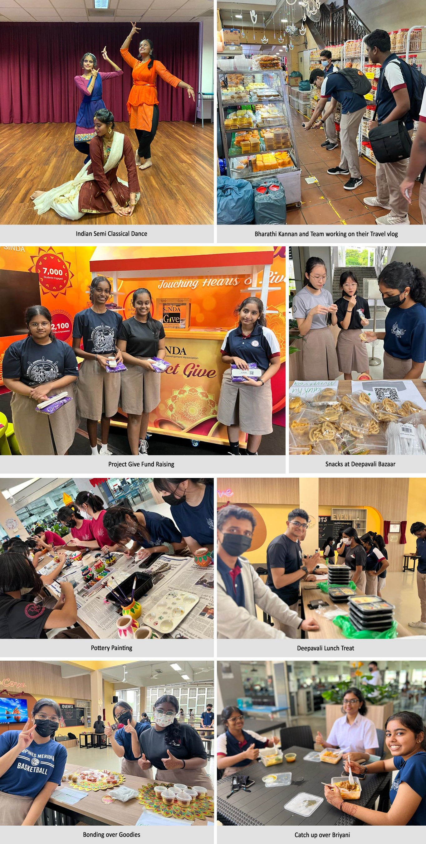 The highlight of this year’s celebration was the Deepavali Bazaar organised by Tamil Language Students and Culture Promotion Club to raise funds to support Project Give, a community fundraising project by SINDA. Our students-initiated a VIA project to raise funds for students from needy families by selling Deepavali snacks, decorative items and setting up an activity corner to do Indian pottery painting. The bazaar which was held over two day 20th & 21st October, at the TM Cove raised a total of $367.00. The project leader Sruthi Rajesh(22S502) personally went down to hand over the funds to the Project Give booth set up at the Indian Heritage Centre. The students gesture to contribute towards the less fortunate during the festival season was commended by the chief executive officer of SINDA in a Facebook post on SINDAs official Facebook page. To round off the celebration, a gathering was arranged for Indian students on the 27th of October, when the staff and students were treated to a sumptuous lunch treat. Deepavali celebrations at TMJC was indeed a celebration of love, light and laughter.