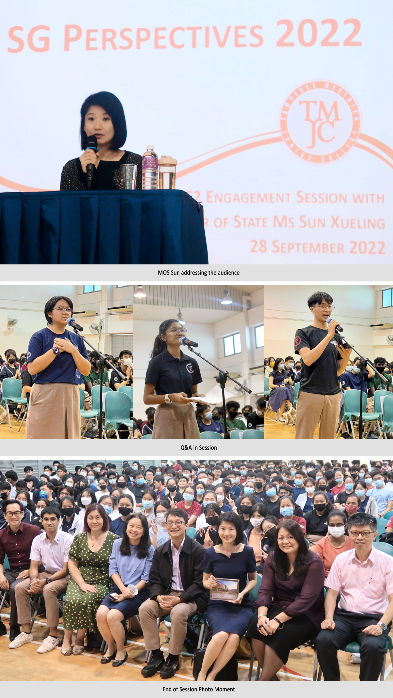 On 28 September, our JC2 students had the unique opportunity to engage Minister of State (MOS) for Home Affairs, Social and Family Development, Ms Sun Xueling, in dialogue. The engagement session was part of the ‘SG Perspectives’ Programme which seeks to broaden students’ perspectives of how national issues affect them on a personal level. With the easing of Safe Management Measures, the session took place live in the College Hall.