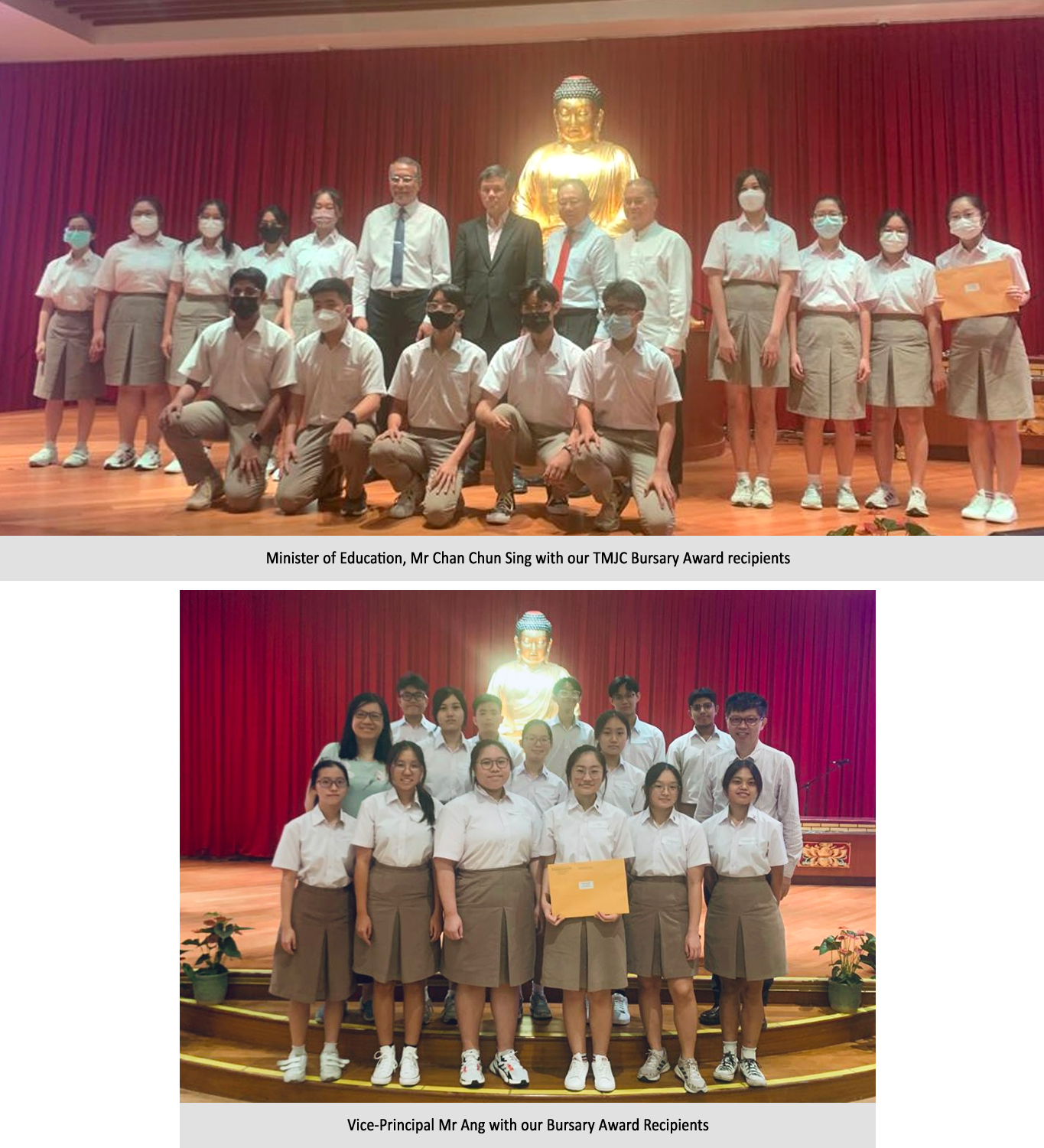 On 8 October 2022, 4 JC2 and 10 JC1 students received the Singapore Buddhist Lodge Bursary Award from the Minister of Education, Mr Chan Chun Sing, at the Quan Yin Auditorium.