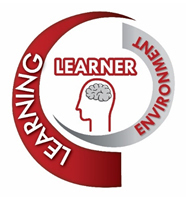(A) Learner; (B) Learning; and (C) Environment, as represented in the diagram.